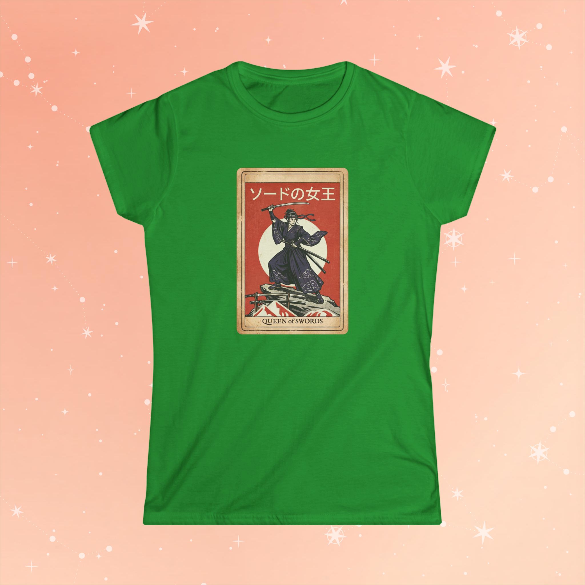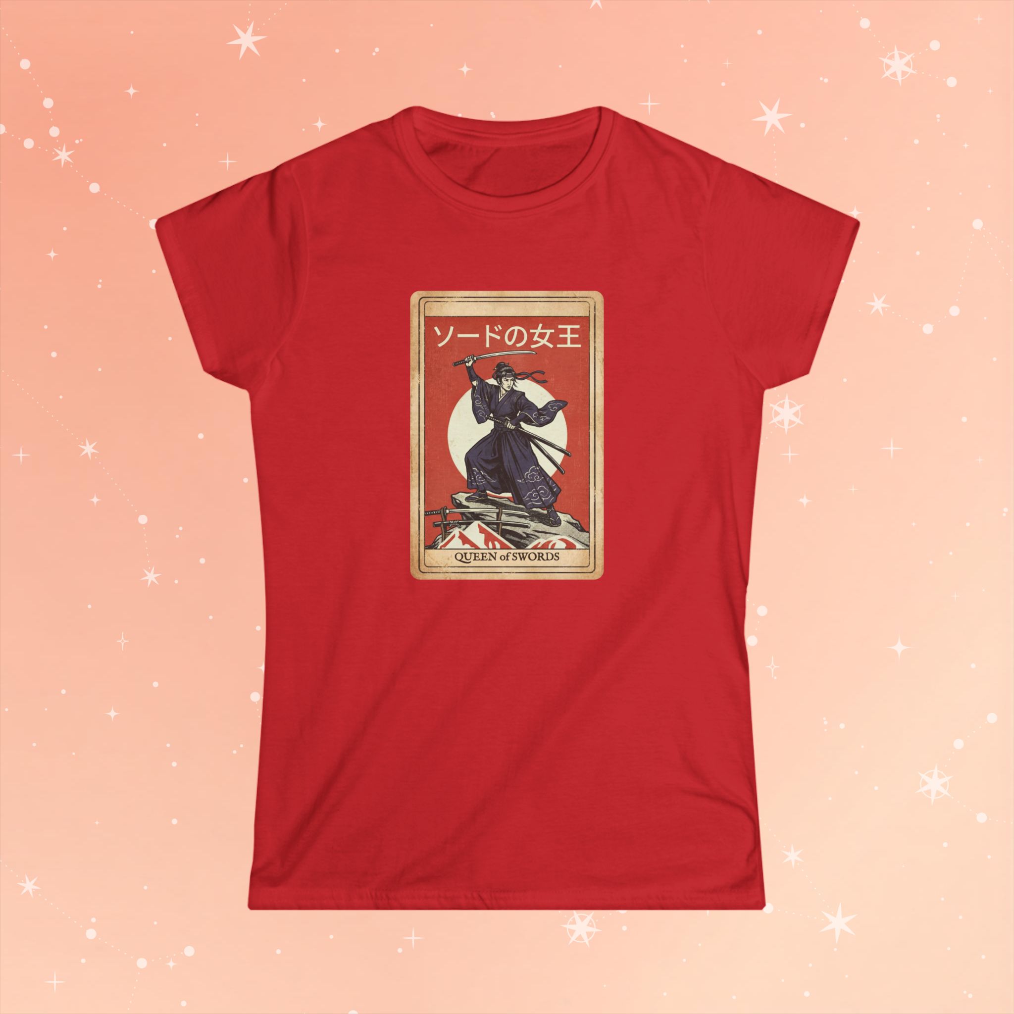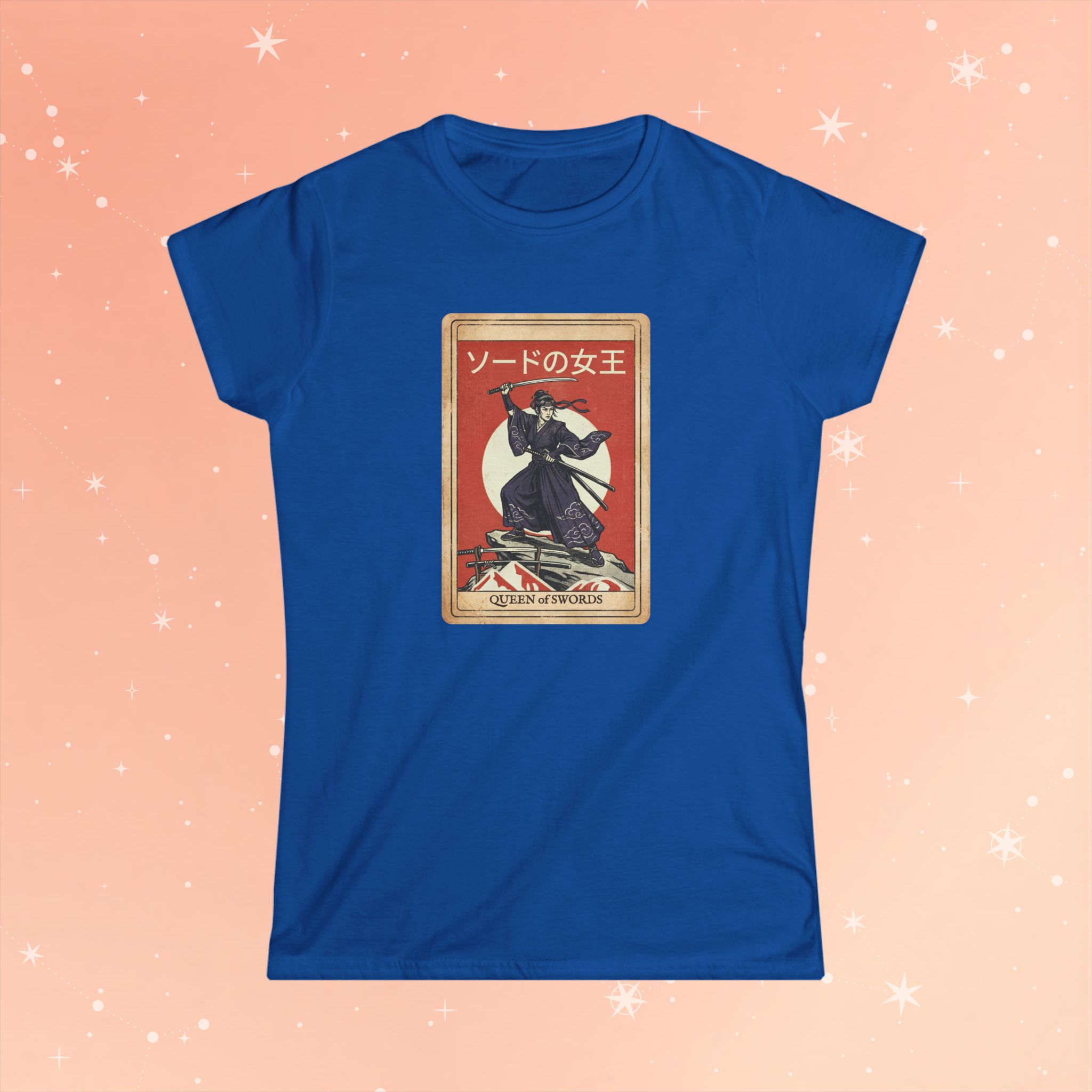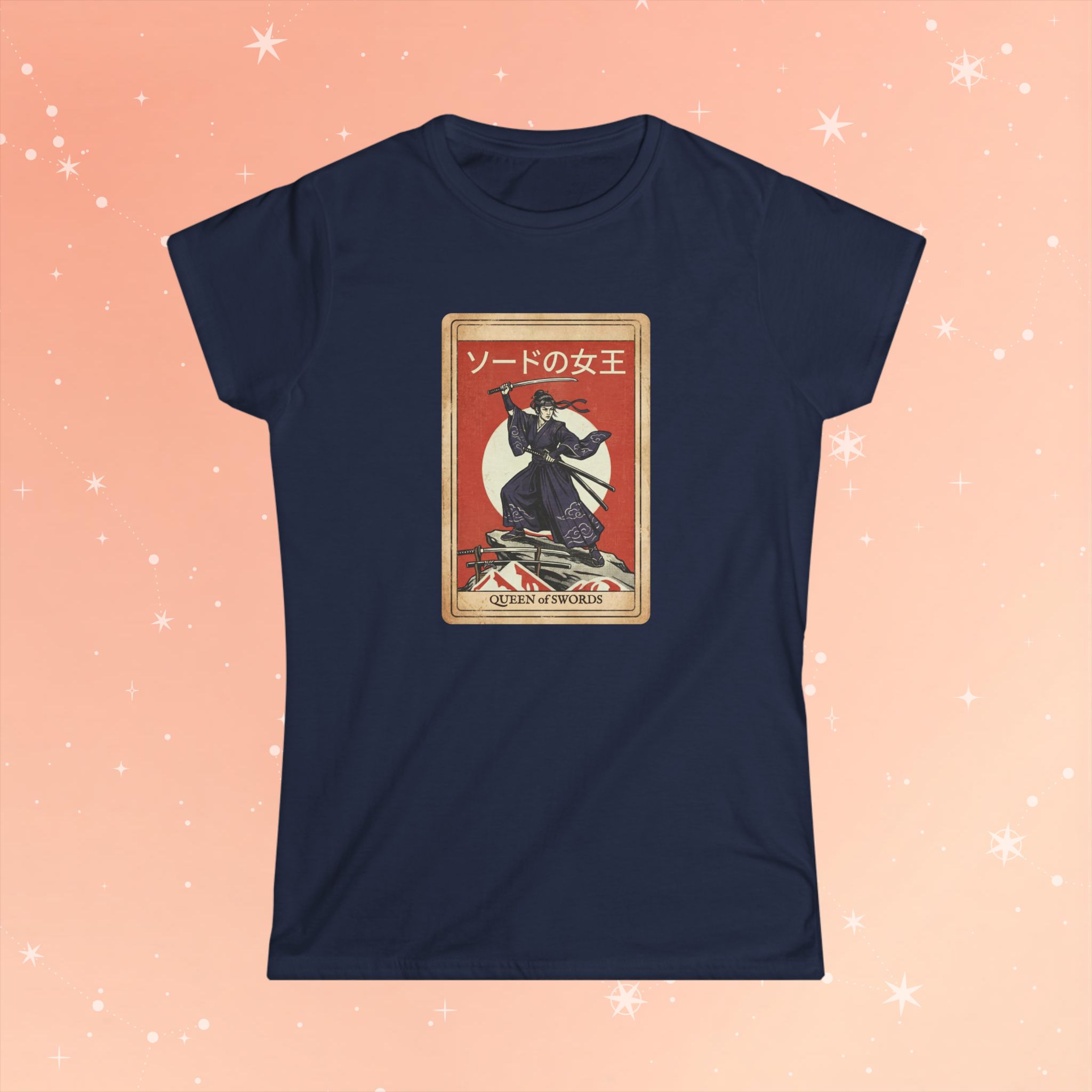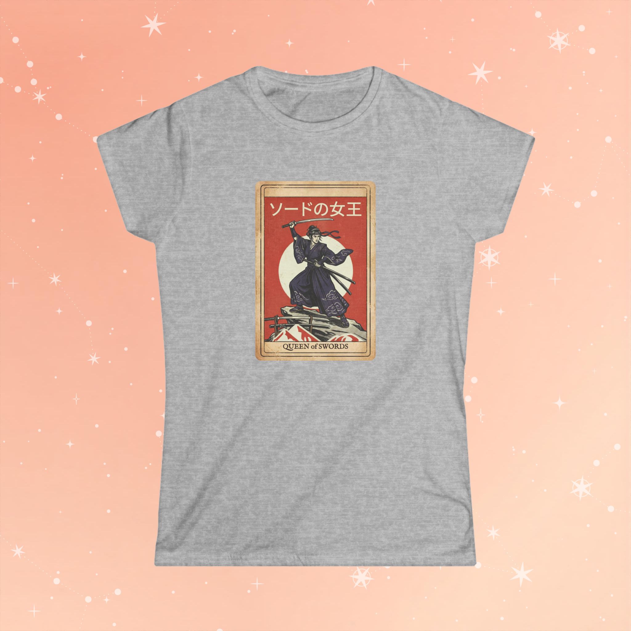 This lightweight cotton tee carries a bold, tarot-inspired illustration right on the chest — a poised swordswoman standing against a rising moon, rendered with vintage print textures and Japanese lettering for an artful, slightly mysterious look. The semi-fitted cut sits close enough to feel tailored while still moving with you. Wear it under an open jacket for layered street style, or with high-waisted jeans when you want an effortless focal piece. The soft, medium-weight fabric and clean neckline make it comfortable for long days of wandering through markets, sketching in a café, or meeting friends for late-night ramen. It’s a quiet statement for anyone drawn to mythic imagery, modern occult aesthetics, or Japanese-inspired graphic art.